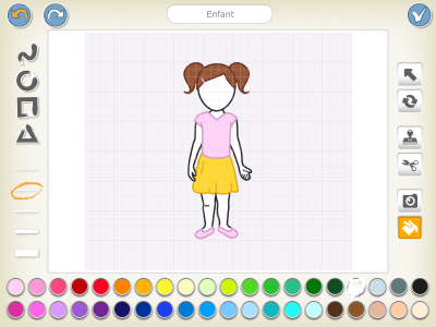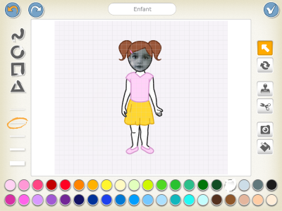 Remplissage : Permet de remplir une forme sélectionnée avec la couleur de son choix. Choisissez une couleur dans la palette puis toucher une forme pour la remplir avec la couleur choisie.