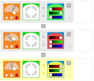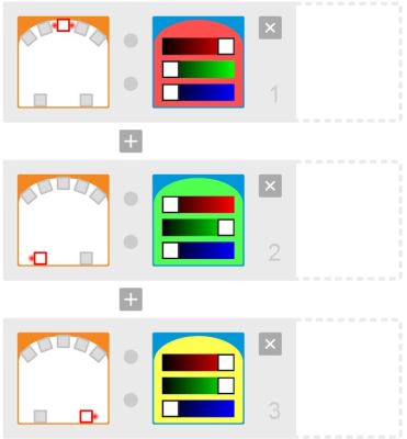 Le défi proposé pourrait par exemple être lorsque Thymio monte une côte il est rouge, lorsqu'il descend il passe au vert, lorsqu'il n'y pas de pente il est blanc.