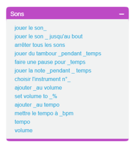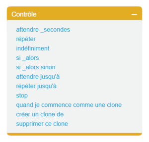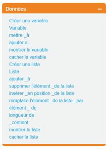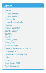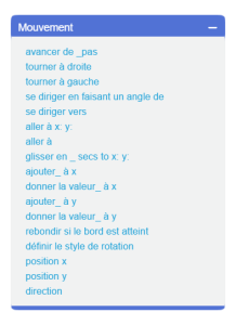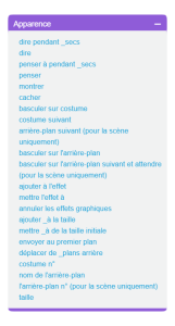 Une présentation synoptique de ScratchArbre synoptique Le logiciel Scratch Les lutins La zone de scripts pour chaque lutin Les costumes pour chaque lutin Choisir un costume de la bibliothèque Dessiner un nouveau costume Utiliser l'éditeur de dessin En mode bitmap ou en mode vectoriel Importer un costume depuis un fichier Créer un nouveau costume avec la webcam Les sons pour chaque lutin La scène La zone de scripts pour la scène Les arrière-plans Choisir un arrière-plan de la bibliothèque Dessiner un nouvel arrière-plan Utiliser l'éditeur de dessin En mode bitmap ou en mode vectoriel Importer un arrière-plan depuis un fichier Créer un nouvel arrière-plan avec la webcam Les sons pour la scène Les blocs de Scratch Blocs de commande Blocs de type chapeau Blocs à valeurs ou "reporters" La palette des blocs Mouvement Apparence Sons Stylos Données Événements Contrôle Capteurs Opérateurs Ajouter blocs Les variables Blocs associés Les listes Blocs associés