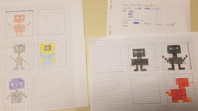 Une seconde séance a permis de reprendre les fiches d'identités déjà créées et de les mettre en correspondance avec leurs productions pixelisées et ainsi les compléter. Cela a aussi permis de créer de nouvelles fiches.