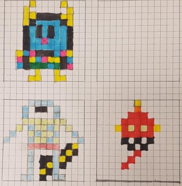 Afin de les aider, ils ont utilisé Internet pour rechercher des exemples de personnages déjà pixelisés. Ils ont donc chercher des images avec les mots clés correspondants à ce qu'ils imaginaient : monstres, prince, princesse, yayas, sossos.