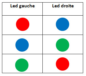 Lorsque le robot se déplace (vitesse 255), ses leds sont vertes.