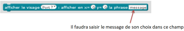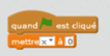 Dans un premier temps, il faudra fixer la valeur de x à 0 dans les lignes de programmation afin que le début du message soit bien centré sur l'écran. Donc après un événement ou un bloc, il faudra glisser le bloc: ![]()