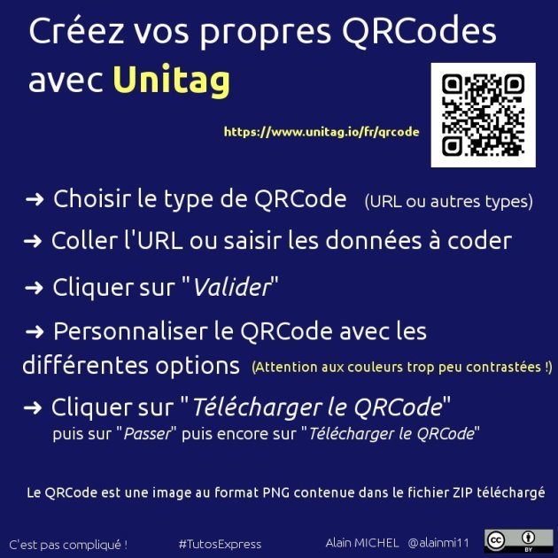 Unitag est un très bon générateur de QR Codes personnalisables pour faciliter l'accès à des ressources, liens, images sur les périphériques mobiles. Les QR Codes permettent d'accéder rapidement à une information et d'associer un support physique avec un espace virtuel en rendant ce support interactif.